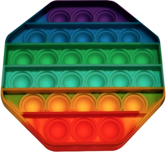 Ovaj šareni Pop It osmerokut vjerno oponaša pucketanje mjehurićaste folije. Izrađen je od kvalitetnog, izdržljivog silicona, ugodno leži u ruci i vodootporan je, pa ćete u njemu uživati kod kuće, vani i na putovanjima.