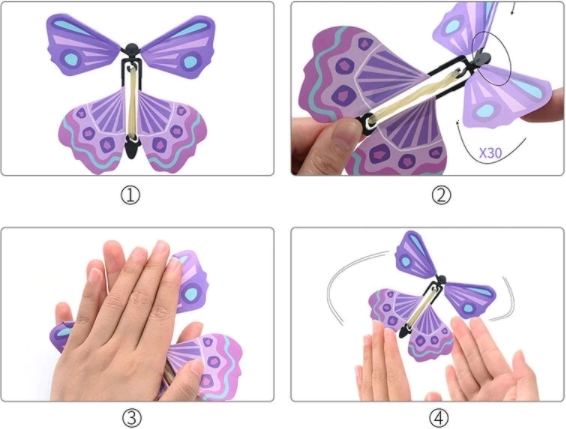 Čarobni leteći leptir je fascinantna igračka za djecu koja unosi radost i iznenađenje u svaki trenutak. Smjestite ga u rođendansku čestitku, knjigu, pismo ili pozivnicu i gledajte kako iznenađeni osmijeh osvjetljava lice osobe koja ga primi. Nakon otvaranja pojavit će se prekrasan leteći leptir.
