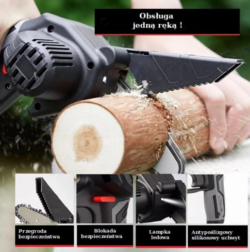 Učinkovita pila s punjivom baterijom za brzo i jednostavno korištenje. Idealna je za orezivanje stabala, grana, grmova i za uobičajene vrtlarske poslove. Mini lančana pila omogućuje upotrebu u bilo kojem trenutku i pod bilo kojim uvjetima. Pila je opremljena lancem izvrsne kvalitete, koji omogućuje brzo rezanje. Lančana pila može se slobodno upravljati jednom rukom, što omogućuje potpunu slobodu kretanja te možete raditi udobno i učinkovito.
