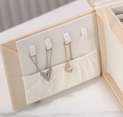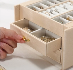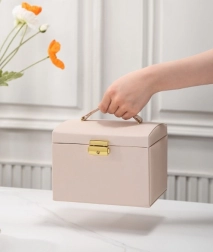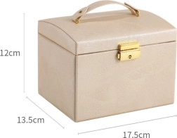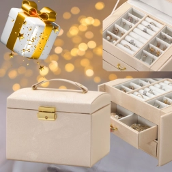 Ova višerazinska kutija za nakit dizajnirana je za sigurno i pregledno spremanje naušnica, prstenja, narukvica, lančića i satova. Meka unutarnja podstava štiti nakit od ogrebotina i zapetljavanja, dok zlatni metalni zatvarač osigurava pouzdano zaključavanje. Bezvremenski, modni dizajn savršeno se uklapa u spavaću sobu, garderobu i dječju sobu.