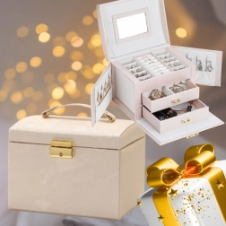 U kompletu je veliko odvojivo ogledalo za udobno isprobavanje nakita i šminkanje. Zahvaljujući praktičnoj ručki i kompaktnim dimenzijama, kutija je lako prenosiva i prikladna i za putovanja. Pažljiva izrada i kvalitetni materijali jamče dug vijek trajanja i svakodnevnu udobnost korištenja.