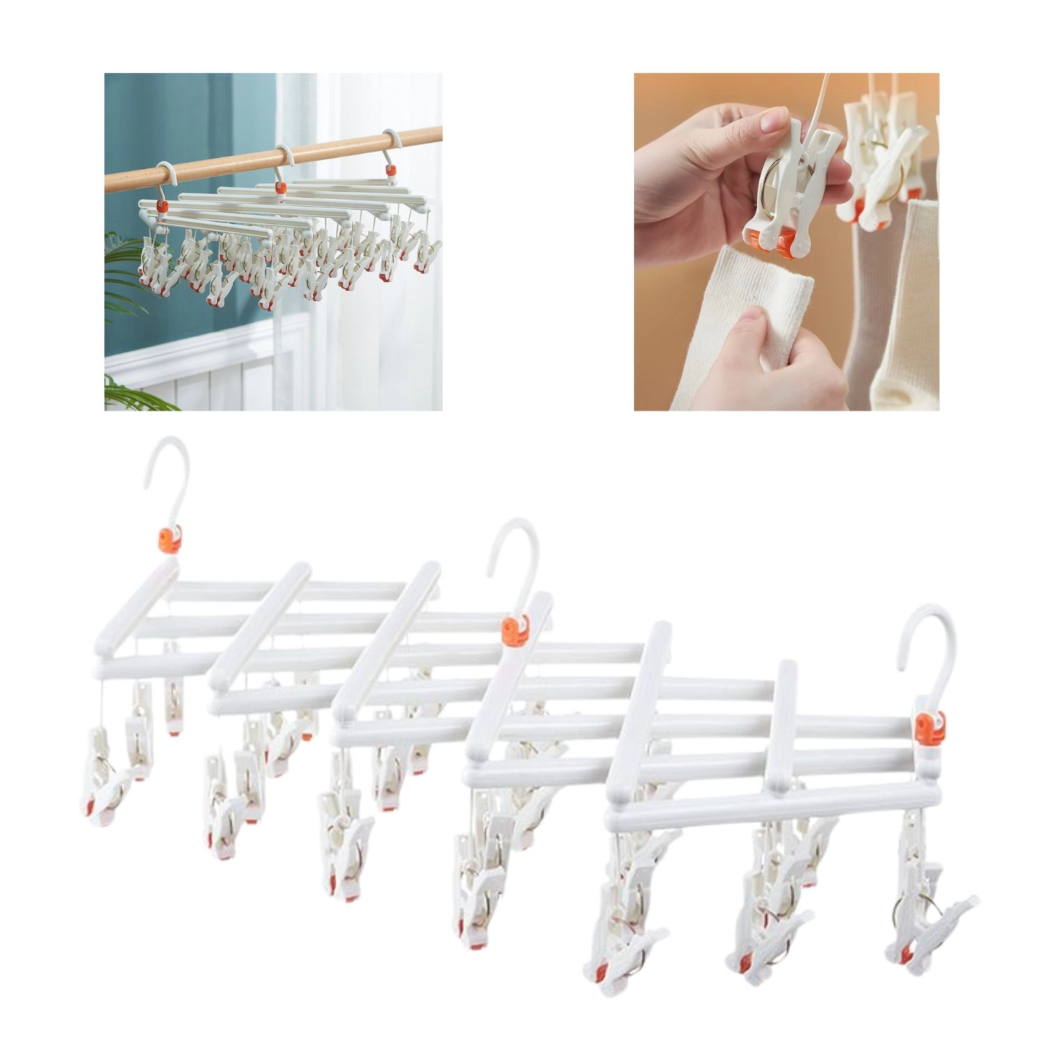 Praktična sklopiva sušilica s 29 kvačica idealna je za sušenje čarapa, donjeg rublja i sitnih komada u domu i na otvorenom. Zahvaljujući okretnom kuku, kompaktnim dimenzijama i izdržljivoj plastici štedi prostor, olakšava organizaciju i osigurava sigurno držanje rublja bez klizanja.