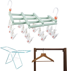 Izdržljiva plastika je otporna na vlagu i brzosušeća, pa je pogodna za balkon, kupaonicu i putovanja. Sklopivi dizajn štedi prostor pri spremanju, a ergonomske kvačice s protukliznom površinom štite tkanine od oštećenja.