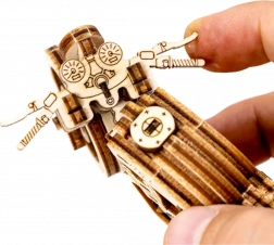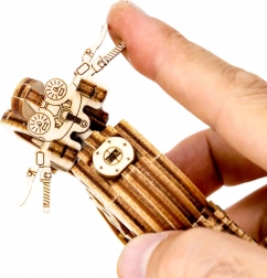 Motocikl Café Racer tvrtke WOODEN CITY detaljno je razrađen drveni model u mjerilu 1:16 koji će oživjeti vaš stol ili vitrinu. Zahvaljujući motoru na gumicu i mehanizmu povratnog hoda model se kreće naprijed i natrag, postiže doseg od približno 1 metra i nudi pogled na pravu mehaniku zupčanika.