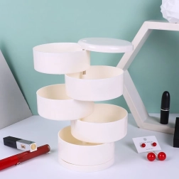 Kutija za nakit dizajnirana je tako da se na svakoj razini može smjestiti druga vrsta nakita. Zlatni, srebrni i bižuterijski nakit možete odvojiti posebno. Lijepo izgleda na toaletnom stoliću ili stolu. Vrlo je praktična za korištenje, a ujedno klasična. Svaki pretinac može se okretati za 360°. Kutija za nakit sprječava zaplitanje lančića te trošenje i grebanje.