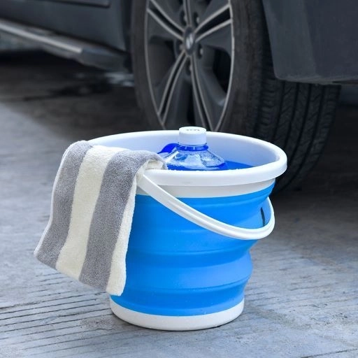 Silikonska sklopiva kanta 5 l – plava i bijela (s poklopcem)