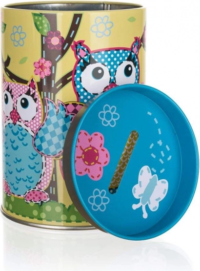 Okrugla kasica s motivom sove idealan je dodatak dječjoj sobi ili kao zanimljiv detalj na polici. Zahvaljujući šarenom i veselom dizajnu privlači pažnju, a pritom vaše uštede čuva sigurno unutra.
