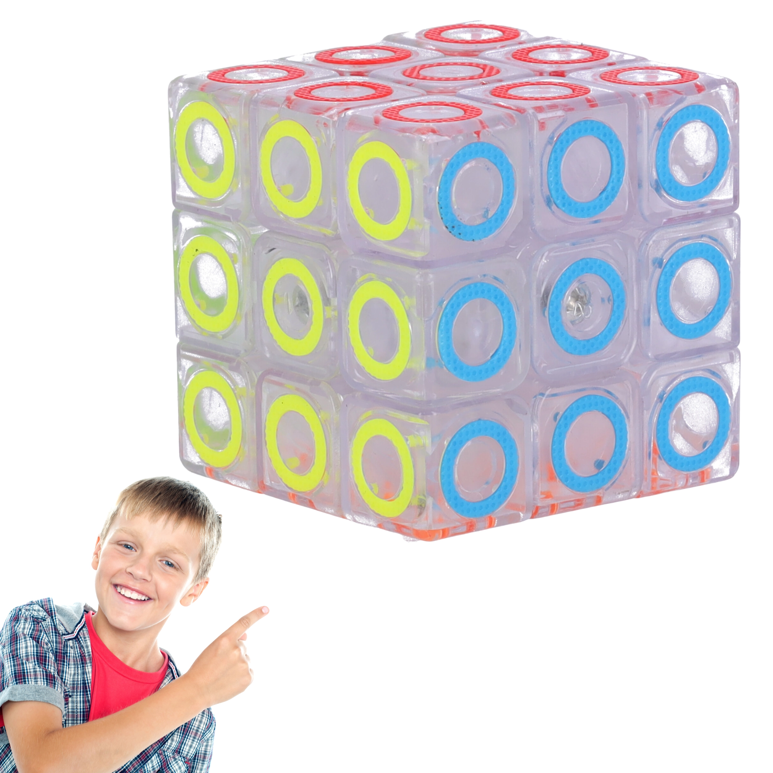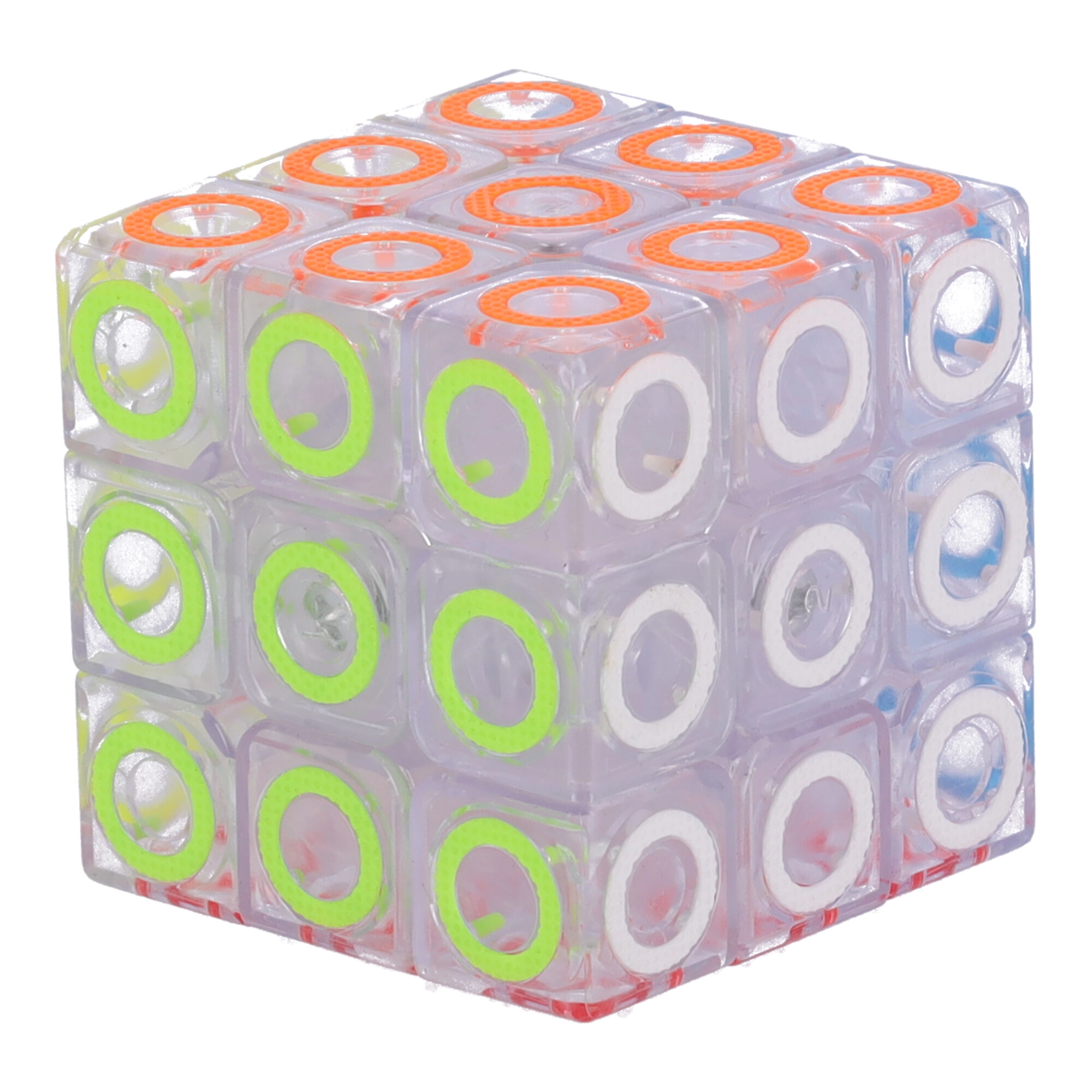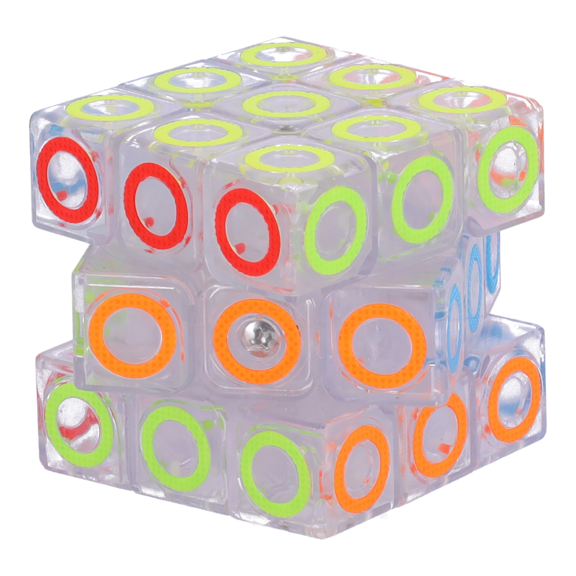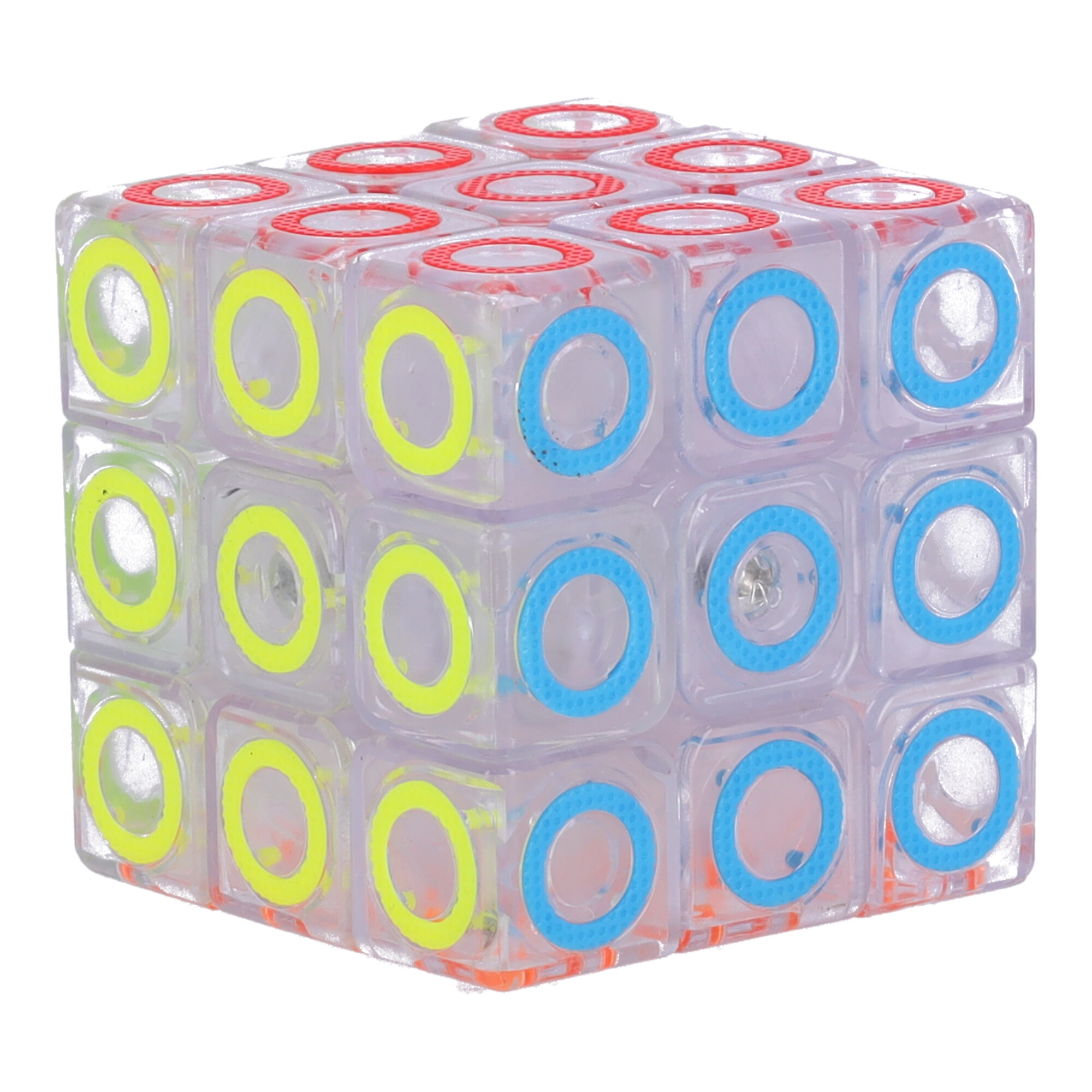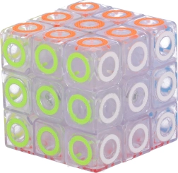 Prozirno tijelo s obojenim prstenovima daje kocki moderan izgled i bolju preglednost pri slaganju.