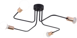 Ova moderna stropna lampa u industrijskom stilu kombinira crnu boju sa zlatnim akcentima i donosi u prostor dojmljiv kontrast. Četiri svjetlosna izvora na oblikovanim spojnicama osiguravaju ravnomjerno osvjetljenje približno 20 m², stoga je idealna kao glavno svjetlo za prostrani dnevni boravak ili blagovaonicu.