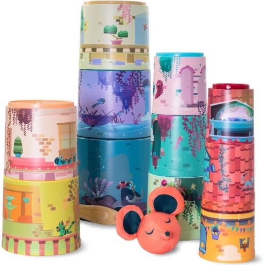 Mišica i njezin fantastični dvorac za rušenje - ova toranj-piramida od šalica čista je mašta! Djeca mogu složiti ogroman toranj od 11 čašica odjednom. Na čašicama su ilustracije različitih prostorija iz bajkovitog palače, u raznim bojama i s mnoštvom likova.