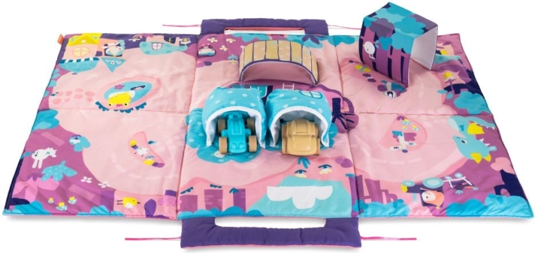 Dijete može provesti sate u fantastičnim pustolovinama zajedno s ovom mekanom podlogom. Podloga pomaže razvijati djetetova osjetila i maštu nudeći mnoštvo senzoričkih elemenata, kao što su šuškavi dijelovi, most, tunel, staze i džepovi za autiće.