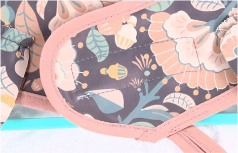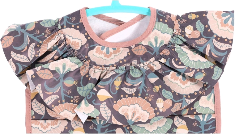 Podbradak ima simpatični cvjetni uzorak koji daje djetetu stil tijekom obroka.