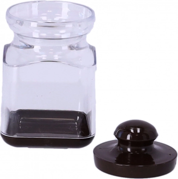 Plastična posuda za začine ima poklopac s kuglastom ručkom koja se može udobno podići, što osigurava njezinu nepropusnost.