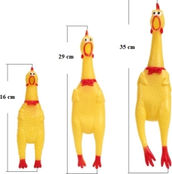 Zabavna igračka za pse u obliku piletine, koja pri stiskanju ispušta zvuk i jamči odličnu zabavu vašem ljubimcu. Izrađena od vrhunskog gumiranog materijala, koji osigurava otpornost pri intenzivnoj igri.
