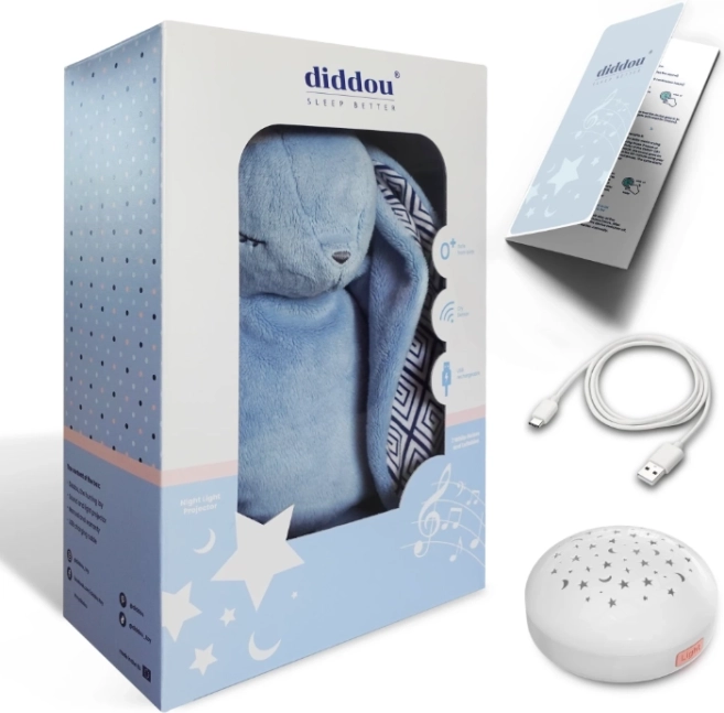 Medvjedić Diddou je plišana igračka koja omogućuje vašem djetetu miran i siguran san. Zahvaljujući ovom maskoti, vaša će beba bez problema zaspati uz zujave zvukove koji oponašaju stanja u maternici. Zvukove i svjetlo možete koristiti izravno u samoj igrački – smjestiti ih u trbuščić maskote ili kao projektor na noćnom ormariću te tako ponuditi vašoj bebi ugodnu atmosferu u obliku zvjezdica za lijepe i šarene snove.