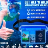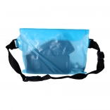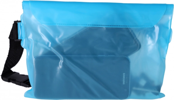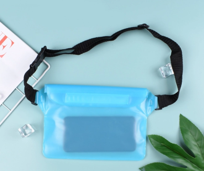 Praktična i stilska vodootporna torbica za struk u svijetloplavoj boji štiti vaš telefon, dokumente, ključeve i gotovinu od vode i pijeska. Zahvaljujući prozirnom materijalu omogućuje upravljanje zaslonom osjetljivim na dodir, ima podesiv remen i sigurno zatvaranje na čičak. Idealna za plažu, bazen i vodene sportove.