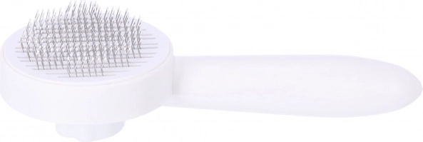 Praktična četka za pse i mačke učinkovito uklanja olabavljenu dlaku i čvoriće te istovremeno nježno masira kožu. Zahvaljujući ergonomskoj dršci ugodno leži u ruci i ne klizi, dok su zaobljene metalne iglice nježne prema koži. Uključeno je i gumb za brzo čišćenje, pa dlake lako otpustite jednim pritiskom. Prikladno za kratkodlake i dugodlake ljubimce te za svakodnevnu njegu zdrave, sjajne dlake.