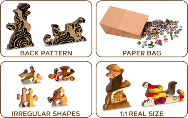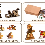 Sastavljanje puzzli s različito oblikovanim dijelovima zahtjevnije je i predstavlja veći izazov od slaganja klasičnih puzzli. Puzzle su dodatno dvostrane, možete slagati prema slici (licem) ili prema obliku (naličje s uzorkom). Brend WOODEN CITY osim jedinstvenog koncepta puzzli vodi računa i o ekologiji, zato kod ovih proizvoda nećete naći plastičnu ambalažu. S jedinstveno oblikovanim dijelovima koji predstavljaju poznate građevine, predmete ili životinje prema temi motiva. Veća zahtjevnost uz manji broj dijelova – slaganje puzzli s različito oblikovanim dijelovima je izazovnije.
