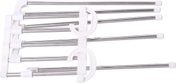 Uredite ormar pametnim organizatorom koji prima do 5 komada odjeće. Zahvaljujući izvlačnim šipkama i okretnim kukama osigurava uštedu prostora, pregledno odlaganje i zaštitu od gužvanja hlača, šalova, kravata i marama.