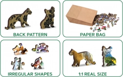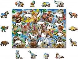 Drvene puzzle WOODEN CITY s motivom „Životinjske razglednice” donose jedinstveno iskustvo slaganja. Zahvaljujući obostranom izvedenom dizajnu možete birati između slaganja prema slici na licu ili prema oblicima na naličju s ponavljajućim uzorkom. Laserom naglašeni detalji daju svakom dijelu dojmljiv izgled, a neki od njih – u obliku životinja, građevina ili predmeta – mogu samostalno stajati kao male figurice.