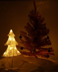 Ukrasno božićno drvce od tkanog materijala koje emitira toplo svjetlo, idealno za blagdansko uređenje.