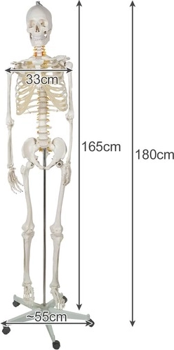 Model kostura visok je 165 cm sam i 180 cm s priloženim stalkom, što predstavlja realnu veličinu odrasle osobe.