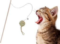 Ovaj interaktivni štap za mačke kombinira čvrstu drvenu štapinu, elastičnu gumicu i laganu lopticu sa zvečkom, koja mami na skakanje, trčanje i lov. Idealan za odvraćanje pozornosti od namještaja i poticanje zdravog kretanja u domu.