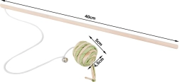 Štap je lagan i dobro leži u ruci, pa se s mačkom možete udobno igrati i dulje vrijeme. Elastična uzica tijekom igre se rasteže do cca 110 cm, a loptica od šuškavog materijala zadržava pozornost i aktivnijih lovaca.
