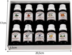Cijeli set sadrži 10 različitih mirisa kao što su eukaliptus, naranča, menta, lavanda i drugi. Svaka bočica ima volumen 15 ml.
