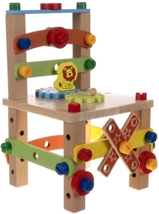 Stolica se isporučuje u dijelovima koji se lako mogu sastaviti pomoću priloženog alata. Djeca na taj način mogu stvarati vlastiti projekt.