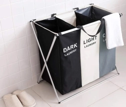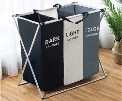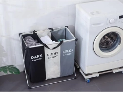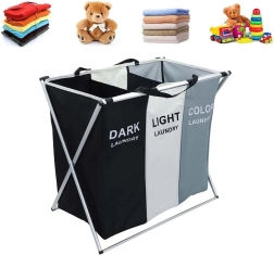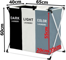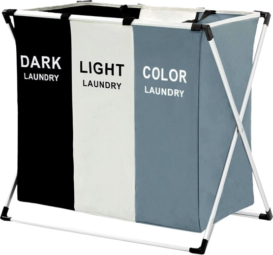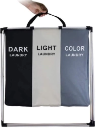 Pojednostavite svakodnevno pranje uz košaru za rublje s tri pretinca koja omogućava odvajanje rublja po bojama. Izrađena je od kvalitetnih materijala i kombinira praktičnu funkcionalnost s elegantnim dizajnom. Ova košara za rublje lako će se uklopiti u svaki interijer.
