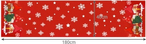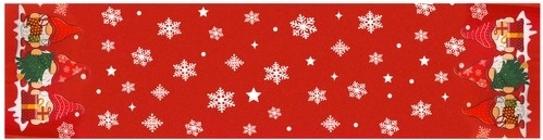 Elegantni crveni trkač s bijelim pahuljicama i zvjezdicama, upotpunjen šarmantnim patuljcima s darovima na krajevima, trenutačno stvara blagdanski i ugodan ugođaj. Odlično izgleda na bijelom stolnjaku ili samostalno, a lako se usklađuje s klasičnim posuđem.
