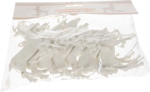 Dajte svojem božićnom drvcetu zadivljujuću čaroliju s ovim ukrasima u obliku sobova. Set uključuje 9 elegantno izrađenih sobova, svaki prekriven sjajnim premazom.