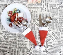 Preslatke kapice za pribor u tradicionalnoj crveno-bijeloj kombinaciji trenutačno će dočarati čarobnu božićnu atmosferu na svakom stolu. Set od 12 komada odlično pristaje za obiteljske večere i blagdanske gozbe, a zahvaljujući izdržljivom poliesteru možete ih koristiti iz godine u godinu.