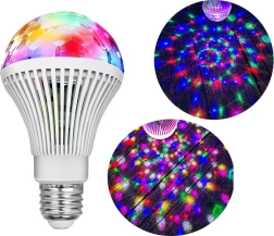 Ova rotirajuća RGB LED žarulja s univerzalnim grlom E27 stvara dinamične svjetlosne uzorke zahvaljujući prizmatastoj kupoli i integriranom motoru. Šarene zrake glatko se mijenjaju i raspršuju po zidovima i stropu, pa je idealna za kućne zabave, karaoke večeri, dječje rođendane i manje diskoteke.