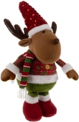 Sob ima izražene božićne boje i dizajn s sobovskom kapom, okruglim trbuščićem i šarenim šalom, što ga čini savršenom božićnom dekoracijom.