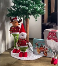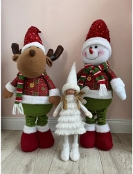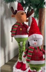 Sob ima podesivu visinu zahvaljujući teleskopskim nogama i modelabilnoj kapi, što omogućuje lako prilagođavanje vašoj dekoraciji. Osim toga, njegov veseli dizajn dodatno krase raznobojni kaput i šal, pridonoseći cjelokupnoj božićnoj atmosferi.