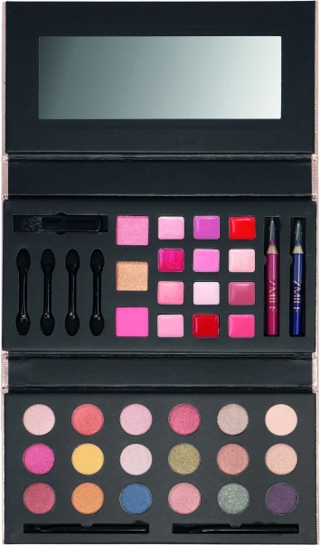 Sklopiva kozmetička paleta „Glam To Go“ – na dvije razine sadrži 18× sjenila za oči, 12× kremasti ruž, rumenilo, brončani puder, 1× olovku za oči, 1× olovku za usne, 1× aplikator i integrirano zrcalo. Dermatološki testirano, u skladu sa strogim EU normama.