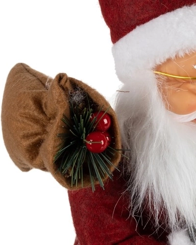 Ova bogato ukrašena božićna dekoracija Svetog Nikole osvaja na prvi pogled. Crveni plašt s bijelim krznenim obrubom, duga bijela brada i zlatne naočale stvaraju klasičan izgled koji neizostavno pripada Božiću. Sveti Nikola nosi lampion i na leđima ima vreću punu darova, pa odmah stvara blagdansko raspoloženje.