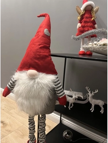 BOŽIĆNI DIZAJN - Božićni patuljak ima zaobljeni trbuščić, bijelu bradu i visoku šiljastu kapu. Zahvaljujući blagdanskim bojama u kojima je izrađen, možete biti sigurni da će se slagati s ostalim dekoracijama i interijerom vašeg doma ili stana. Zahvaljujući teleskopskim nogama, možete prilagoditi njegovu visinu prema svojim potrebama.