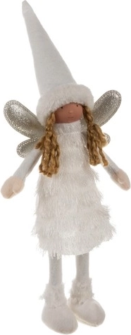 Elegantna božićna figurica anđela/elfa u snježno bijeloj izvedbi unijet će u interijer čaroliju Božića. Ima svjetlucava krilca, stabilnu obuću s čvrstim potplatom i zimski outfit s haljinom s rol-ovratnikom i kapicom s krznom. Odlično pristaje na komodu, prozorsku dasku, uz kamin i ispod bora te lijepo nadopunjuje blagdanski dekor u modernom i klasičnom stilu.