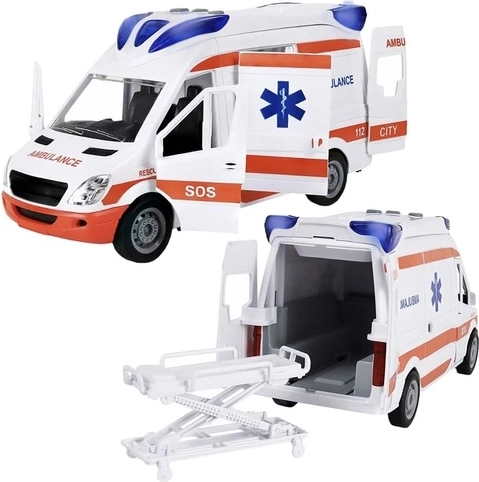 Ova plastična ambulanta vjerno oponaša pravo spasilačko vozilo – od tiska do funkcija. Djecu će oduševiti tri gumba na krovu za aktivaciju svjetala i sirena, dok otvarajuća prednja, bočna i stražnja vrata otkrivaju detaljnu unutrašnjost. U pakiranju su sklopiva i izvlačna nosila kojima je pacijenta lako “ukrcati” u vozilo.
