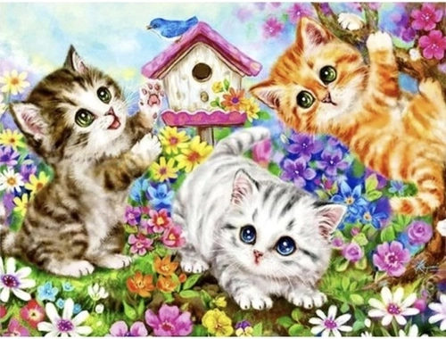 Stvorite veselu sliku s motivom triju mačića u procvjetanom vrtu. Gotovo platno uljepšat će dječju sobu, dnevni boravak ili radni prostor.