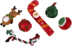 VELIKI SET- sadrži čak 6 igračaka za vašeg ljubimca, poput teniske loptice, pletenog užeta te 4 gumene i piskave igračke kojesu u božićnom ruhu.