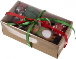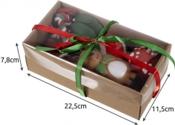 SPECIFIKACIJE -materijal: guma, plastika, tkanina; boja: crvena, narančasta, zelena; broj igračaka: 6; dimenzije poklona: 7,8 x 22,5 x 11,5 cm; masa: 308 g; masa pojedinačnog pakiranja: