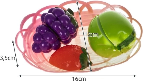 Plodovi su podijeljeni i spajaju se čičkom – djeca ih mogu sigurno prerezati nožićem na dasci i ponovno sastaviti.
