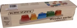 Drveni sortirnik i slagalica KRUZZEL pametna je edukativna igračka za djecu od 2 godine. Šareni dijelovi u osnovnim oblicima – krug, trokut, kvadrat, pravokutnik i peterokut – stavljaju se na klinove s preprekama, što motivira djecu na manipulaciju i precizne pokrete prstiju. Igra potiče prepoznavanje boja i oblika, strpljenje i pamćenje.