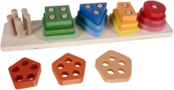 Stavljanje dijelova preko prepreka na klinovima potiče djecu na precizno rukovanje oblicima – time jačaju prste, koncentraciju i koordinaciju oko–ruka.