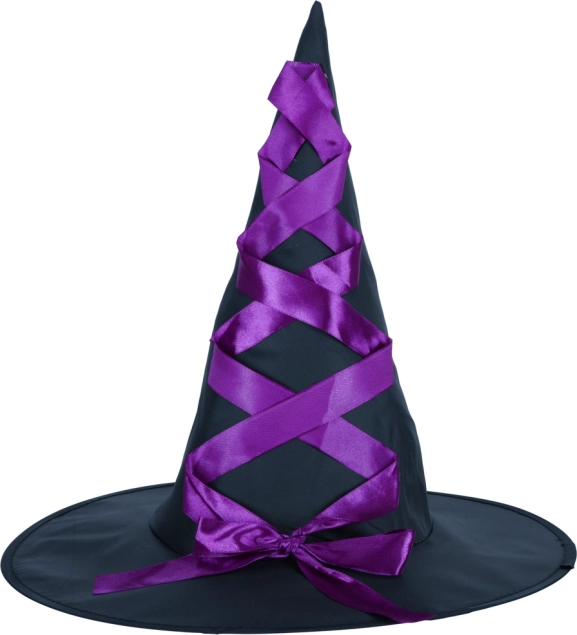 Crni i ljubičasti šešir s karakterističnom ukrštenom ljubičastom vrpcom daje kostimu autentičnost.