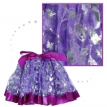 Ljubičasta suknjica sa sjajnim srebrnim uzorcima i elastičnim pojasom lako se prilagođava različitim tjelesnim oblicima.
